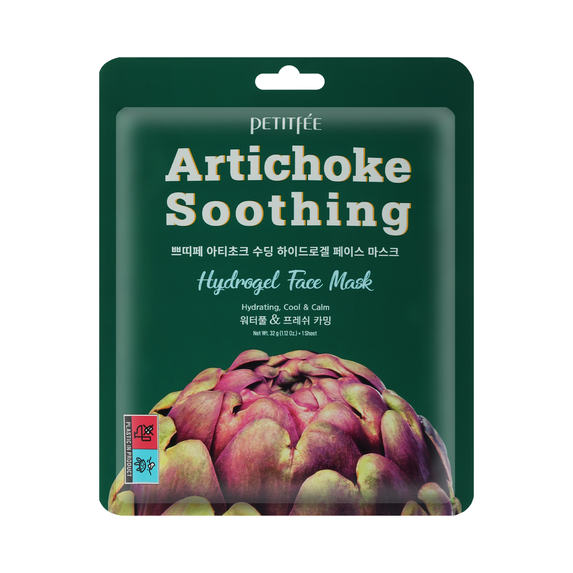 Противоотёчная гидрогелевая маска с артишоком Petitfee Artichoke Soothing Hydrogel Face Mask обладает охлаждающим действием, восполняет недостаток влаги, успокаивает раздражённую кожу и снимает зуд.