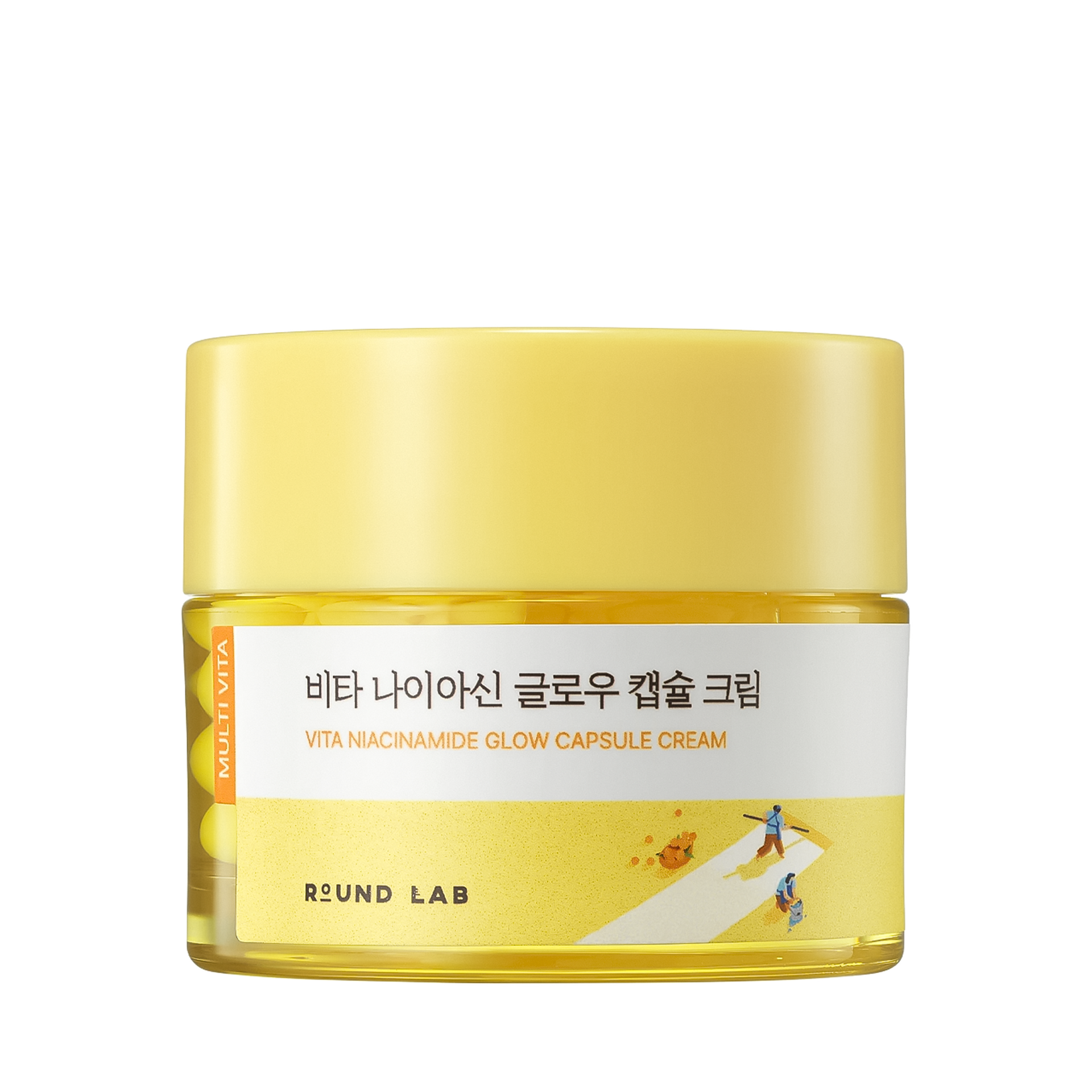 Крем Round Lab Vita Niacinamide Glow Capsule Cream устраняет тусклость, уменьшает выраженность пигментации, разглаживает рельеф, делает кожу гладкой и сияющей.